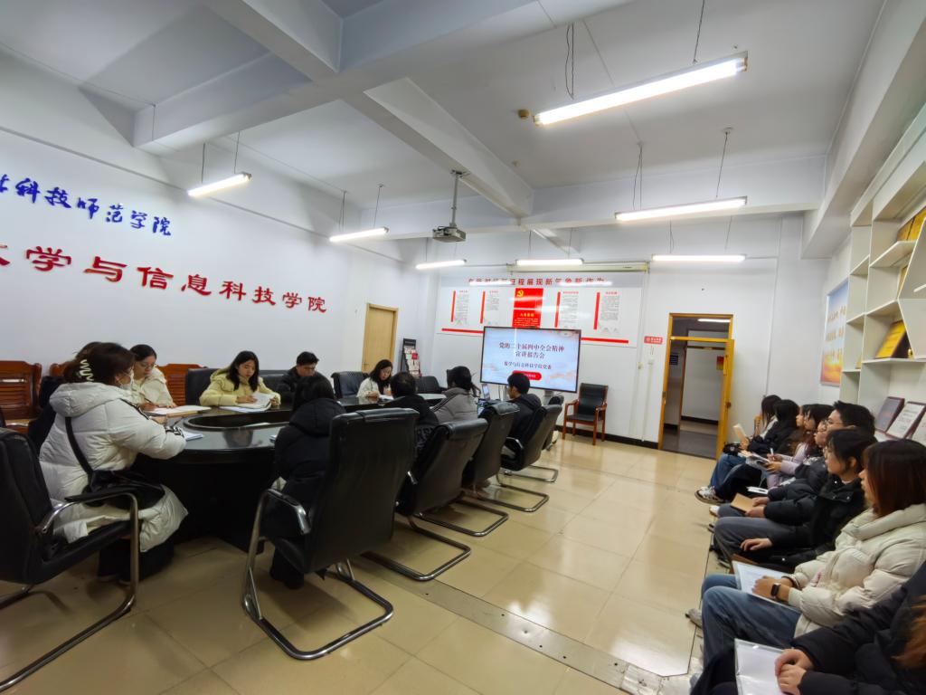 2025年12月4日,数学与信息科技学院在1001会议室举行党的二十届四中全会精神宣讲报告会。学院党委书记杨崇泽作宣讲报告,30余名学生党员代表参加宣讲会。