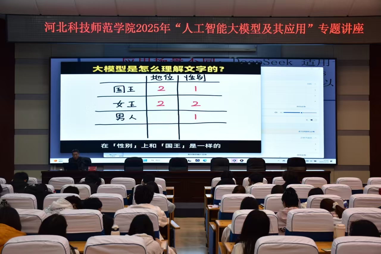 2025年4月16日,学校数学与信息科技学院承办的“AI新浪潮:校园智创文化矩阵”主题系列活动在秦皇岛校区学术交流中心举办,《人工智能大模型及其应用》专题讲座同期开讲。学校网络技术中心主任、校团委负责同志、数信学院学生工作负责同志及400余名师生代表参加了活动。
