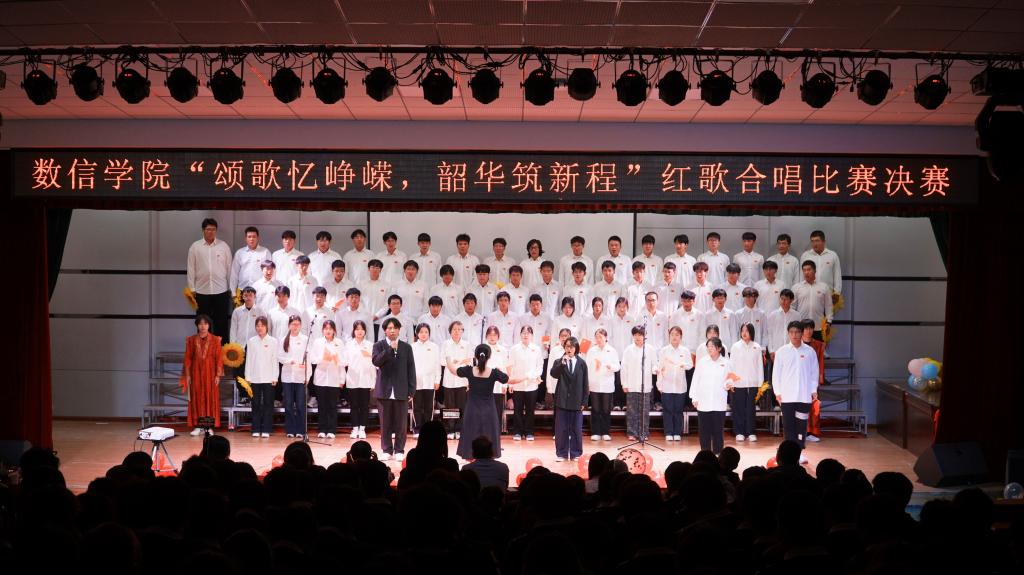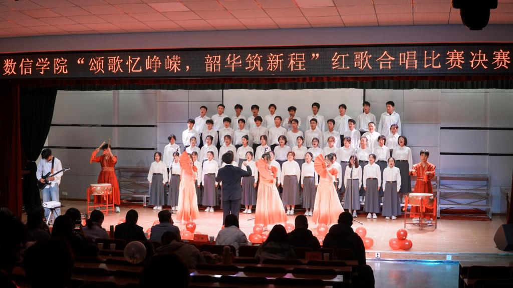 本次比赛分初赛和决赛两个阶段。经过初赛激烈的比拼,最终脱颖而出8支队伍晋级决赛。决赛现场,参赛班级身着整齐统一的服装,身姿挺拔、精神抖擞,台风稳健大气。从《没有共产党就没有新中国》的铿锵有力到《歌唱祖国》的豪情满怀,从《少年中国说》的朝气蓬勃到《大中国》的深情款款,一首首经典红歌与校歌轮番上演,旋律悠扬、歌声嘹亮,既唱出了对祖国母亲的赤诚热爱与美好祝福,更彰显了数信学院学子锐意进取、奋发图强的青春风采。此外,各队伍还巧妙融入舞蹈、朗诵、乐器弹奏等创意元素,将听觉享受与视觉体验完美结合,为现场观众呈现了一场精彩纷呈的视听盛宴,台下掌声、欢呼声此起彼伏,气氛热烈非凡。经过激烈的角逐和评委们的认真评选,最终评选出了一等奖一个,二等奖两个,三等奖三个,优秀奖两个。