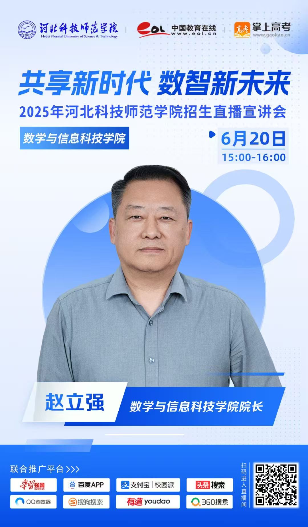 各位考生、家长: 2025年河北科技师范学院招生直播宣传,学院专家带你走进学院,走近专业。欢迎观看,也可查看回放。招生咨询热线03358076333,03358053966。