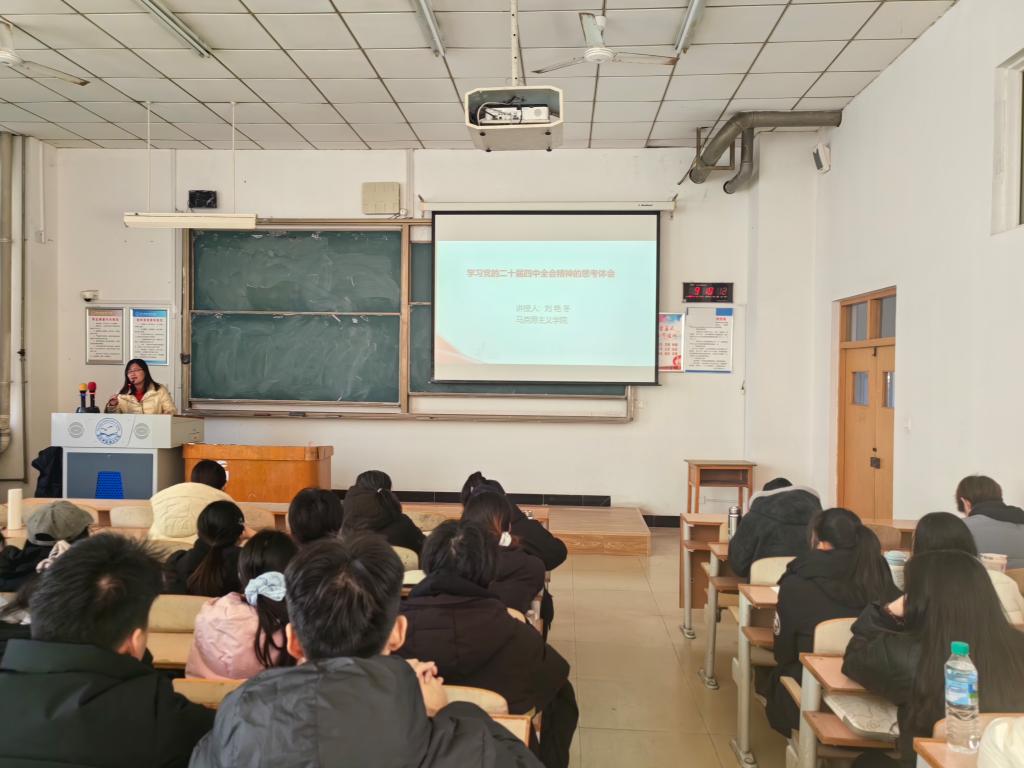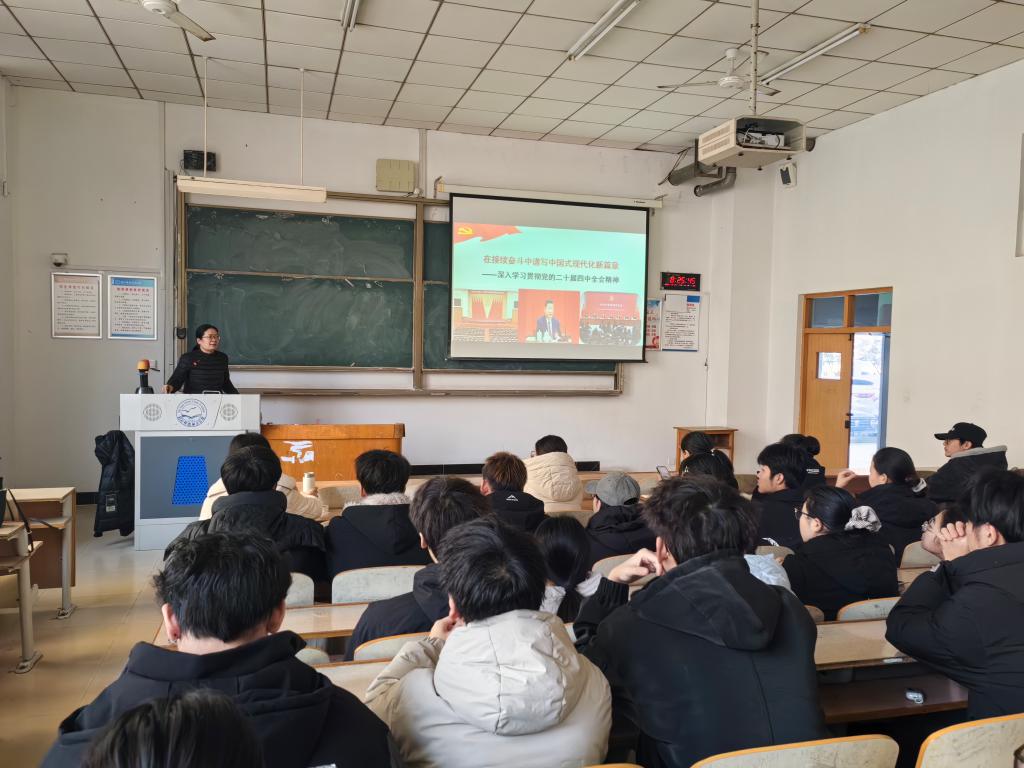 2025年12月25日,数学与信息科技学院在秦皇岛校区逸夫楼A111教室举办了党的二十届四中全会精神宣讲报告会。本次报告会邀请了学校思想政治理论教育宣讲团成员、马克思主义学院副教授杜立文、刘艳冬作宣讲报告。共有100余名师生党员参加了此次宣讲会。